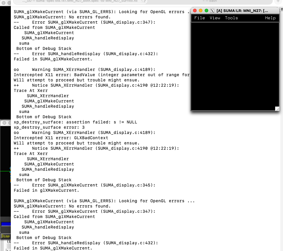 Failed in SUMA_glXMakeCurrent.