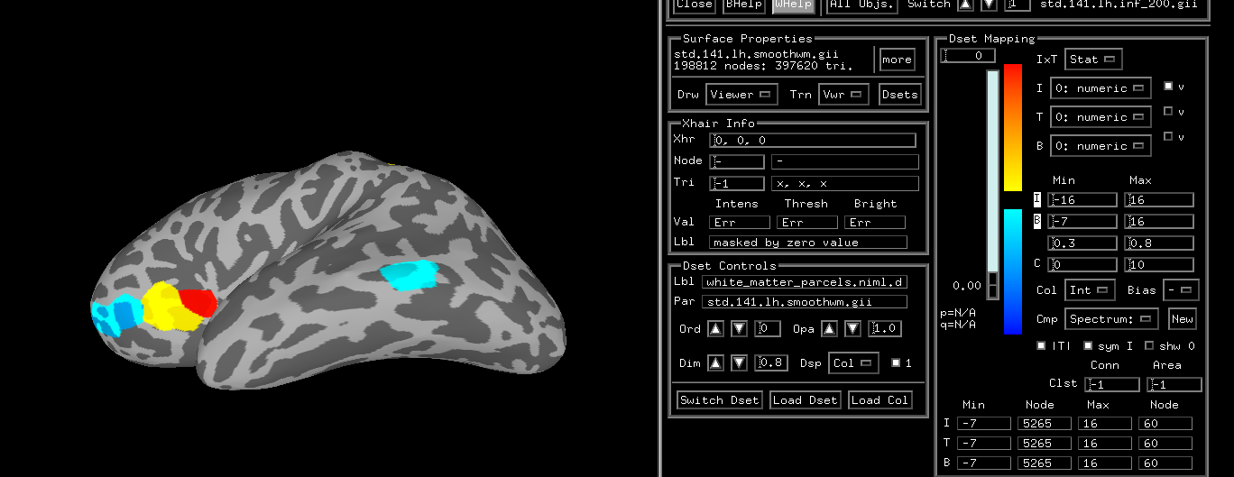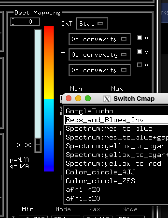 I've created a custom SUMA dset with values ranging from -7 to 16. My goal is to use two spectrums, one from -16 to 0, and another from 0 to 16 to display the scale of the positive values and the scale of the negative values.