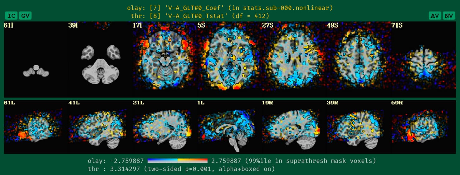 What is new (as of AFNI_25.2.11), is that the colorbars below the transparently thresholded images themselves now reflect this more helpfully. This comes in two flavors: